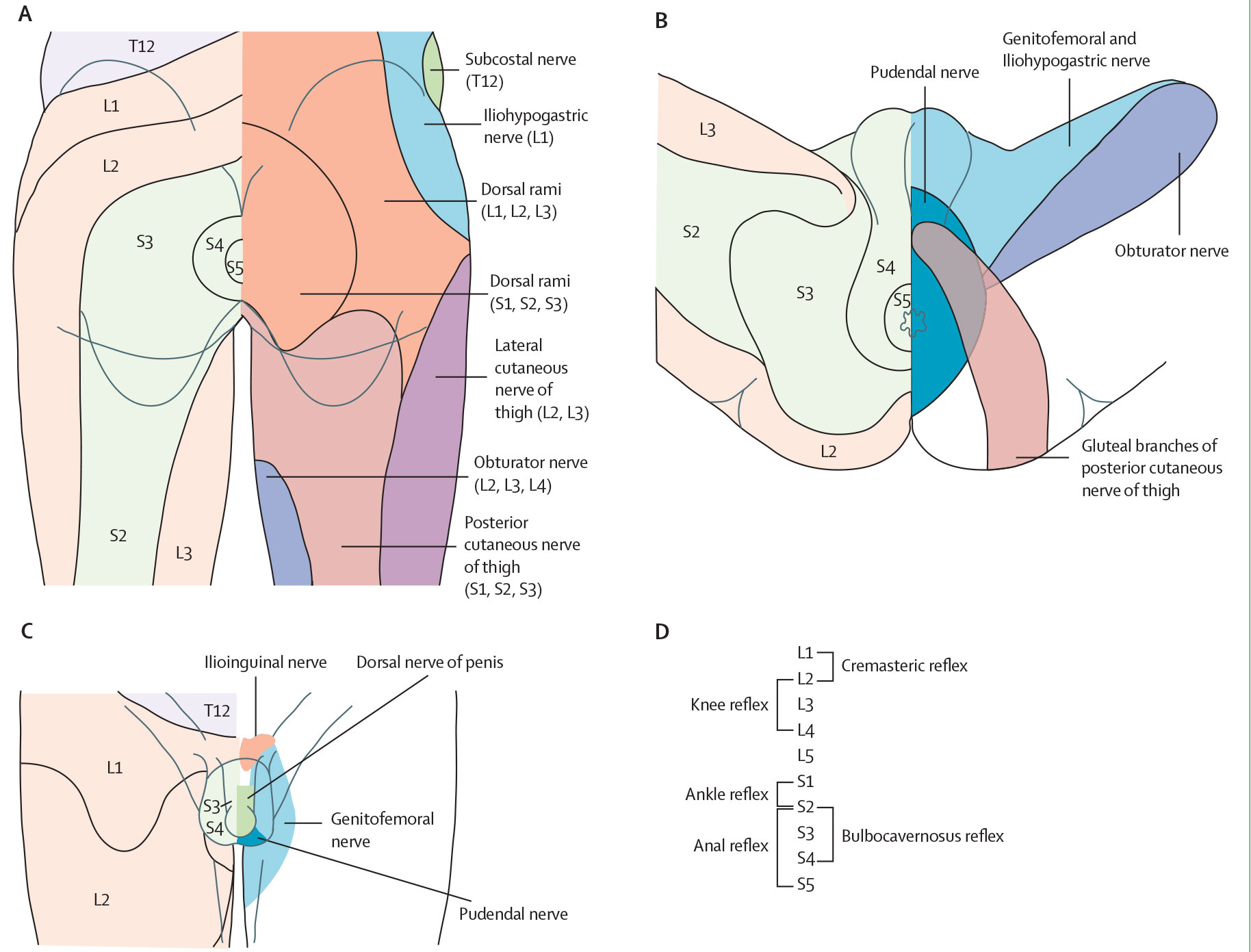 | Sensation in genital area (absent, increased, abnormal, pain) |