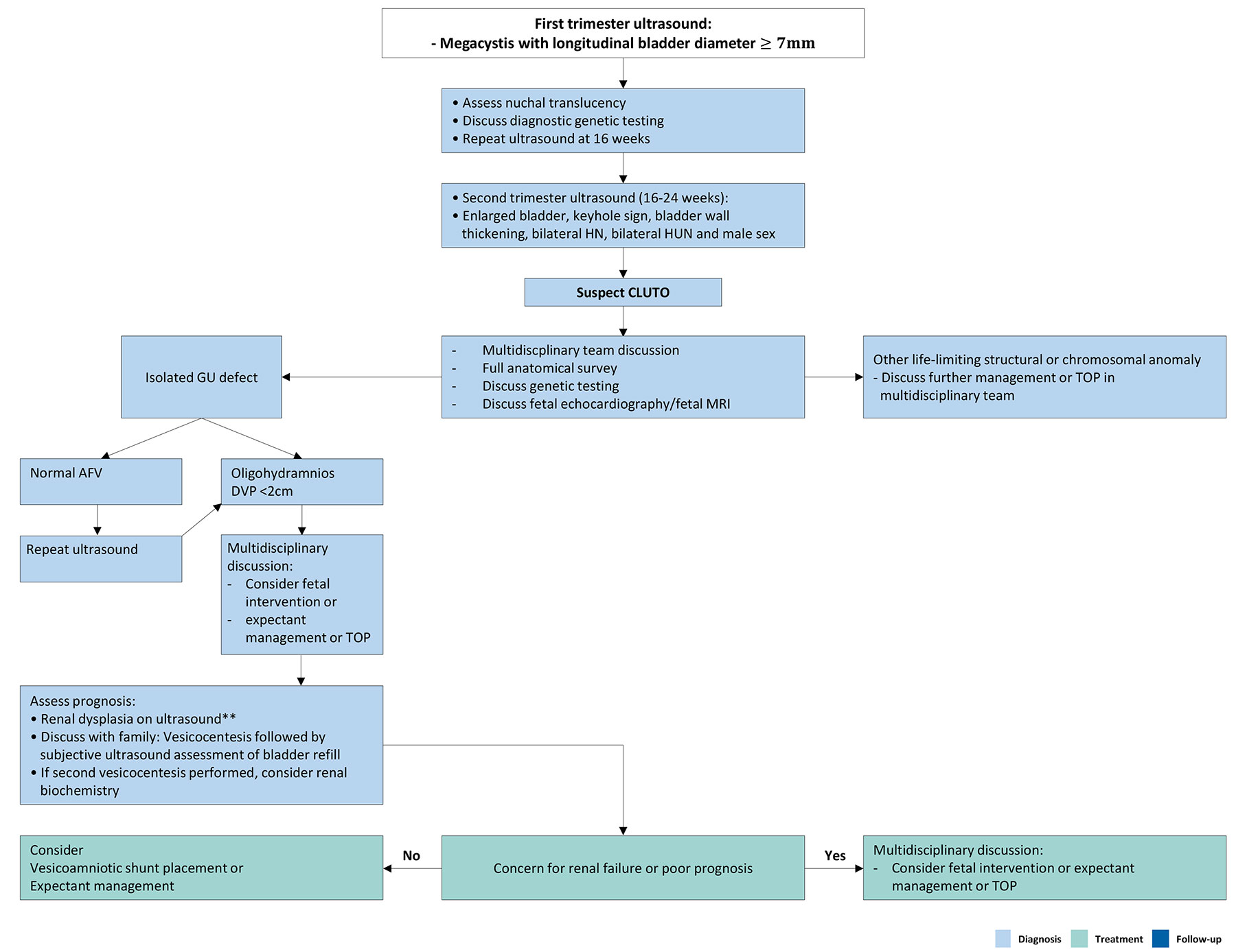 Due to the heterogeneity and the rare spectrum of clinical manifestations of CLUTO, referral of such cases is recommended to a tertiary centre with multidisciplinary expertise in prenatal and postnatal management of obstructive uropathies [1228].