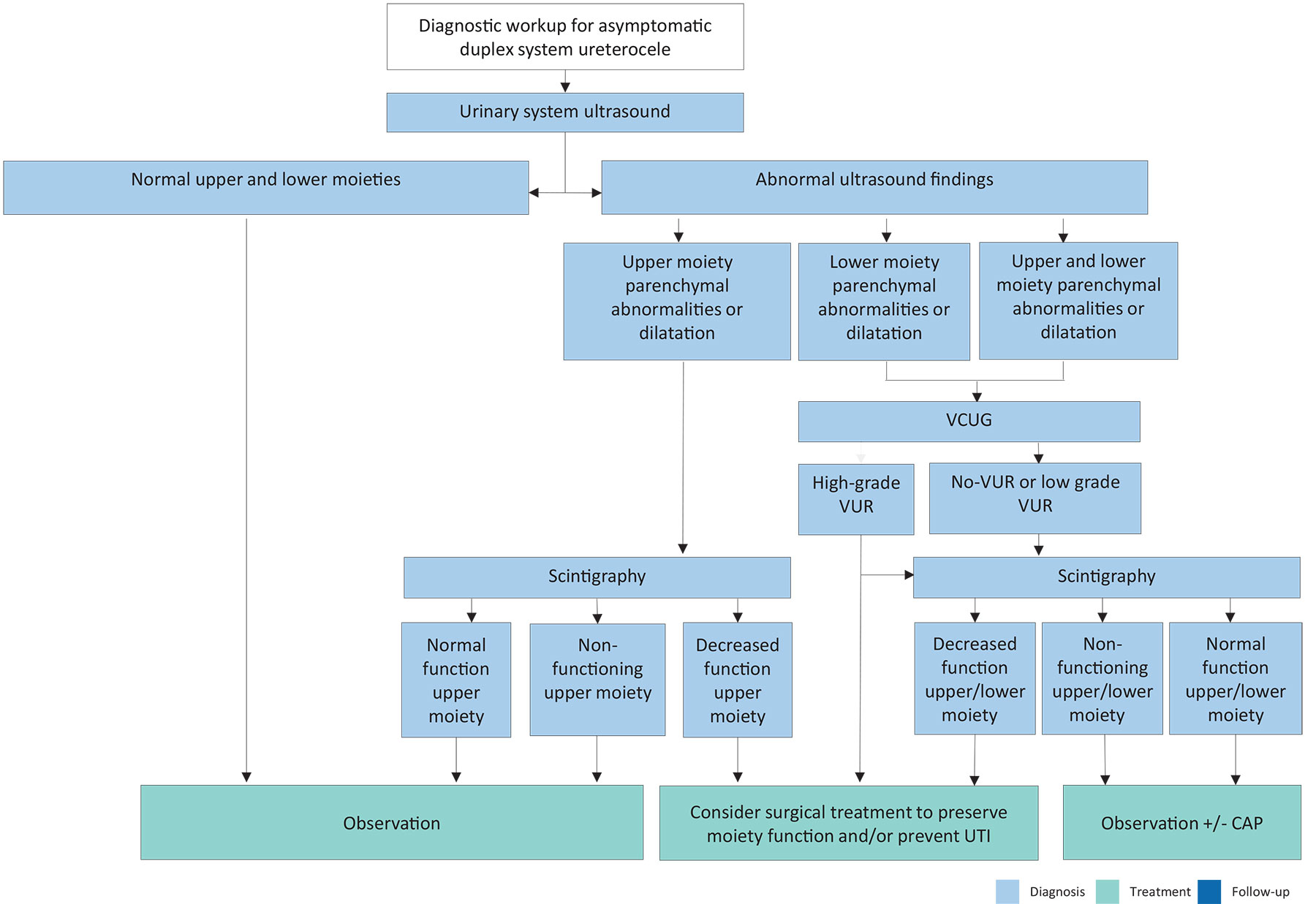 Figure 13: Diagnostic pathway for asymptomatic ureterocele