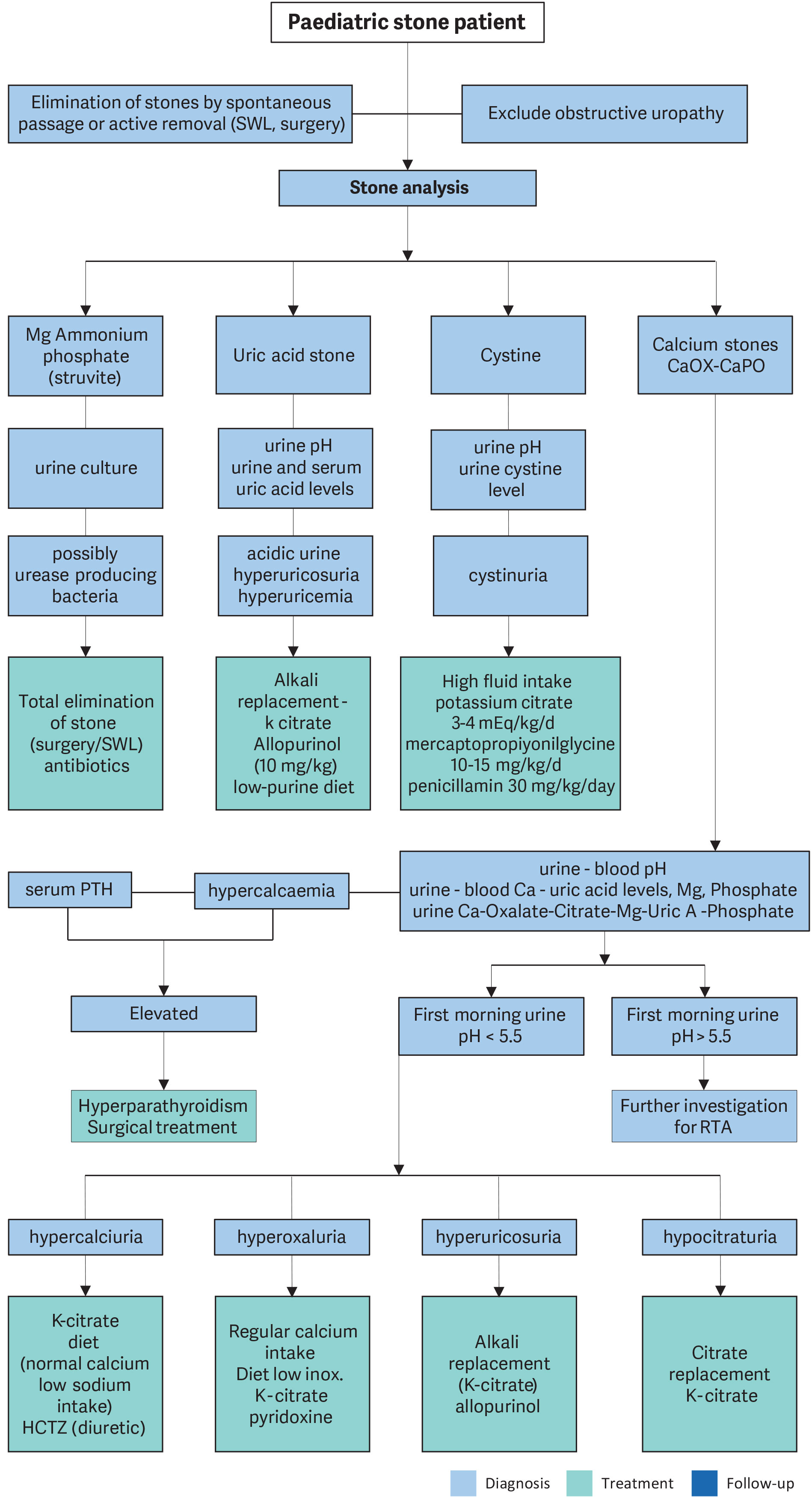 Figure 11 provides an algorithm on how to perform metabolic investigations in urinary stone disease in children and how to plan medical treatment accordingly.