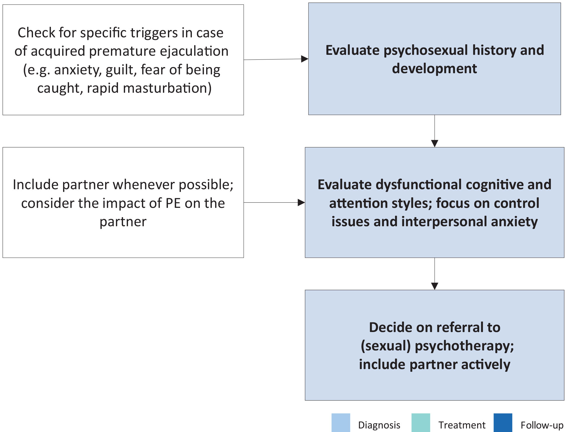 | Include the partner if available; check for the impact of premature ejaculation on the partner. | Strong |
