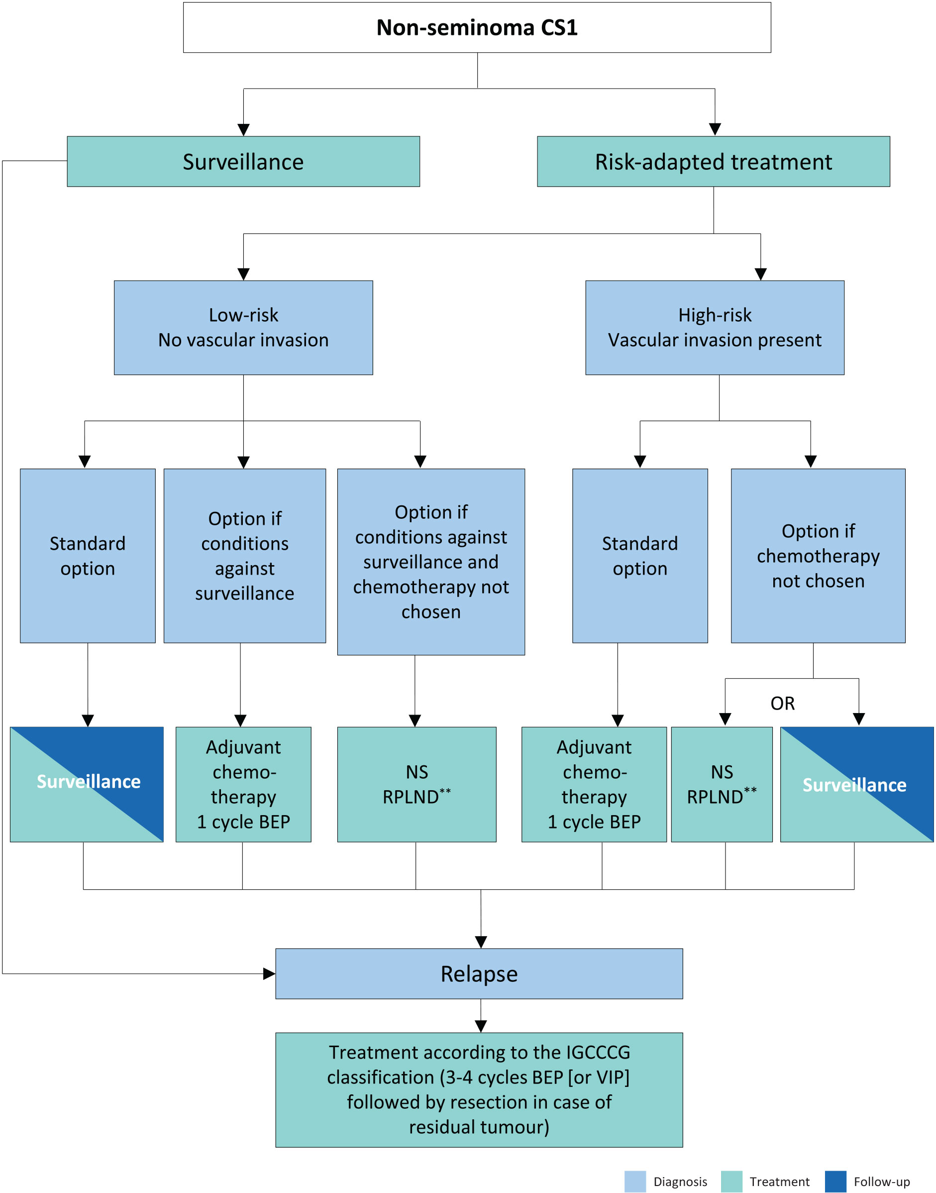 Figure 1: Risk-adapted treatment in patients with clinical stage I non-seminoma NSGCT*