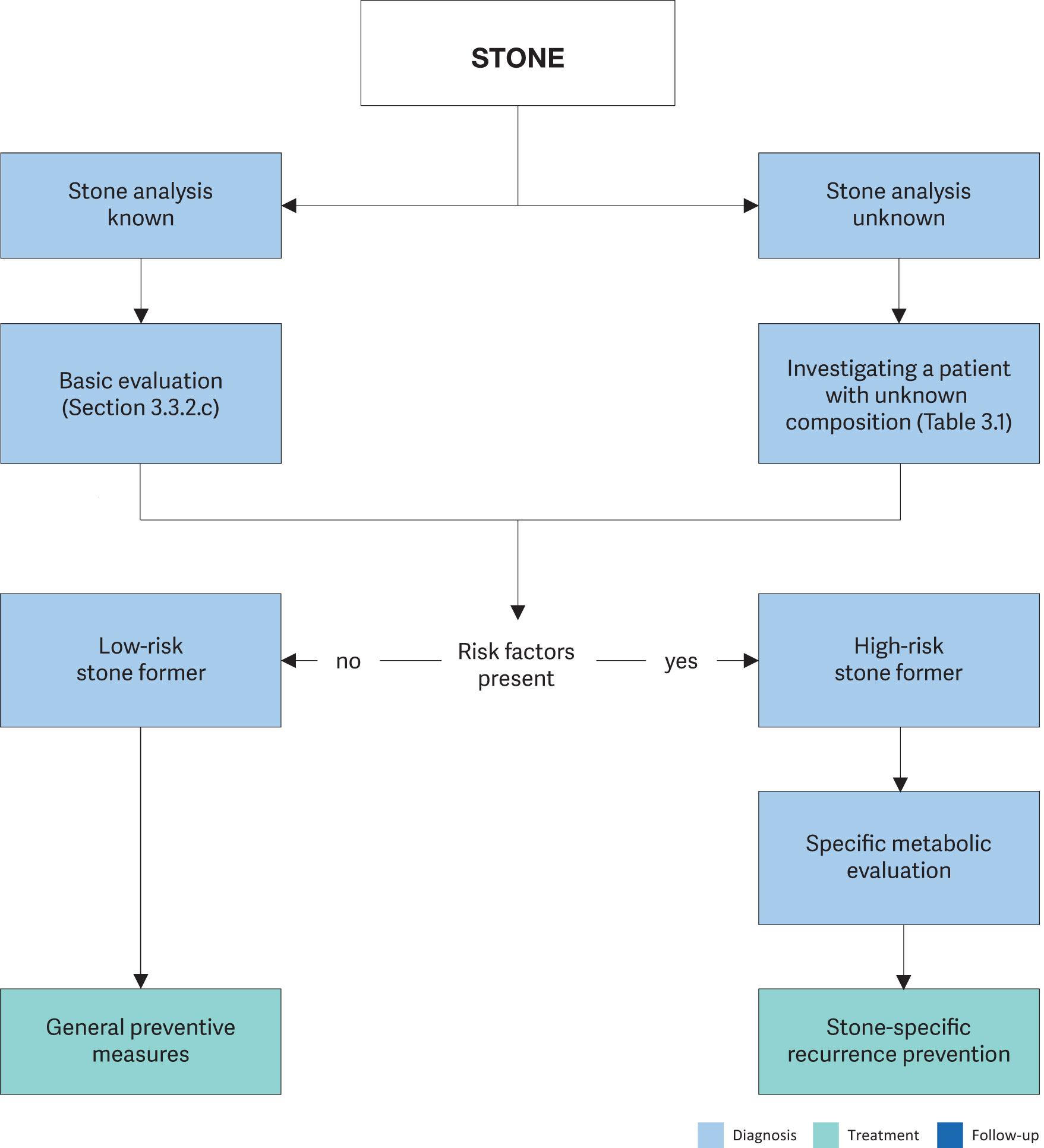 After stone passage, every patient should be assigned to a low- or high-risk group (Table 3.3) for stone formation (Figure 4.1).