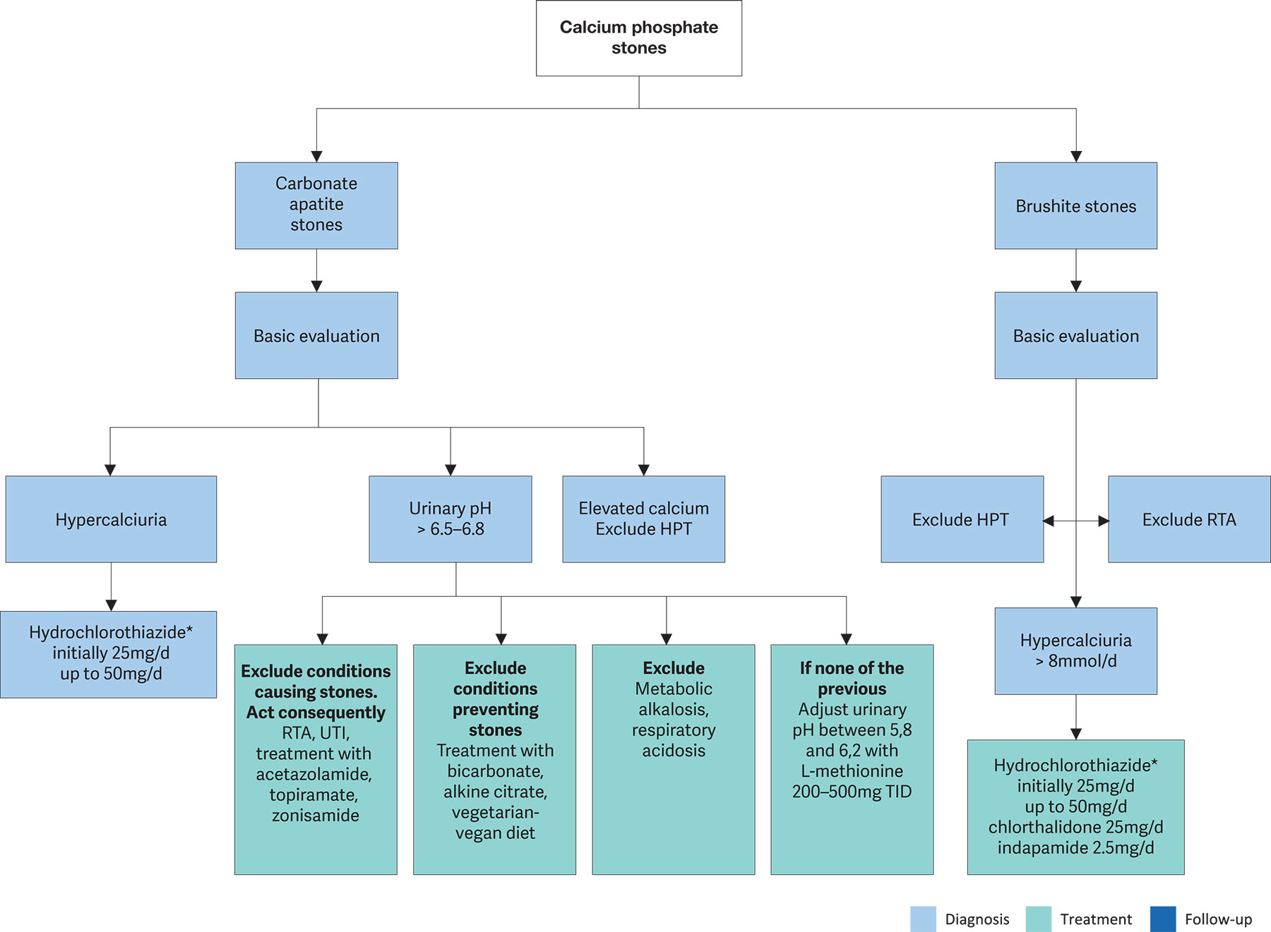 Following this programme, the most probable stone type can be assumed, and specific patient evaluation can follow. Further metabolic investigations will depend on the presence of risk factors (see Section 3.1.3) and on the results of previous investigations. However, if any expulsed stone material is available, it should be analysed for diagnostic confirmation or correction.